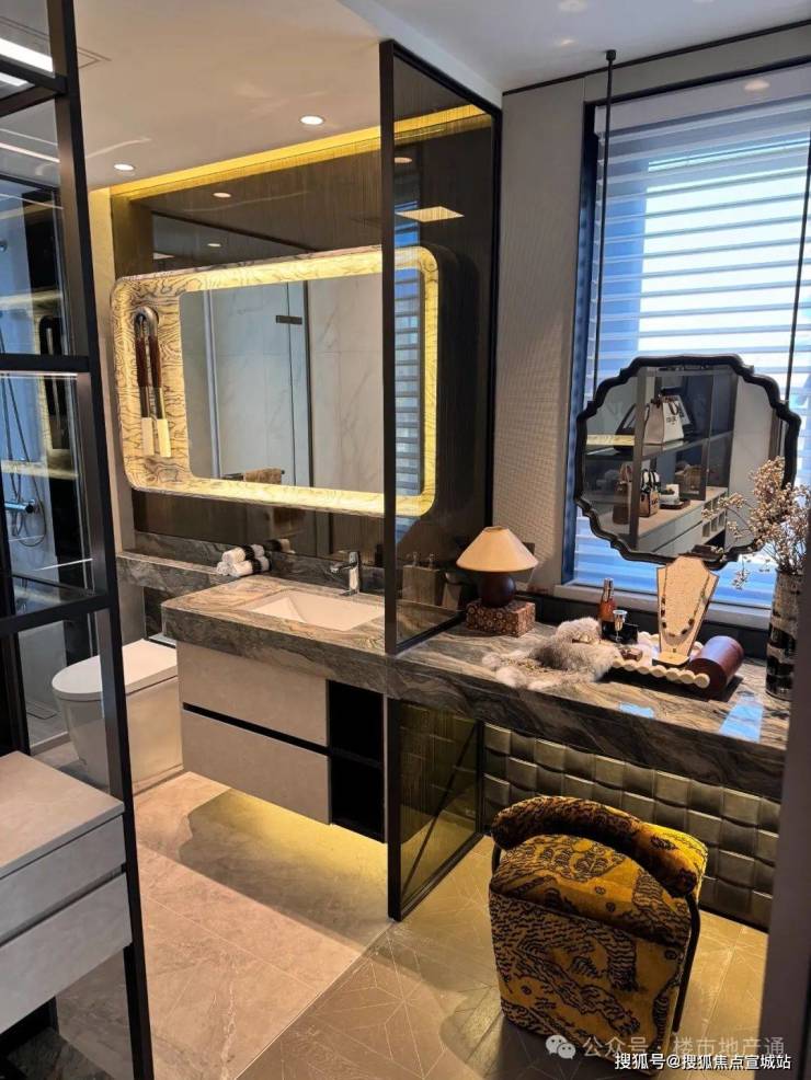 5、园区+公区:产品定位为龙湖高端奢宅“御系列”,继下沙御湖境之后第二座“御湖境”;60米长的库班绿奢石山水门庭,内嵌8扇7米高的屏扇