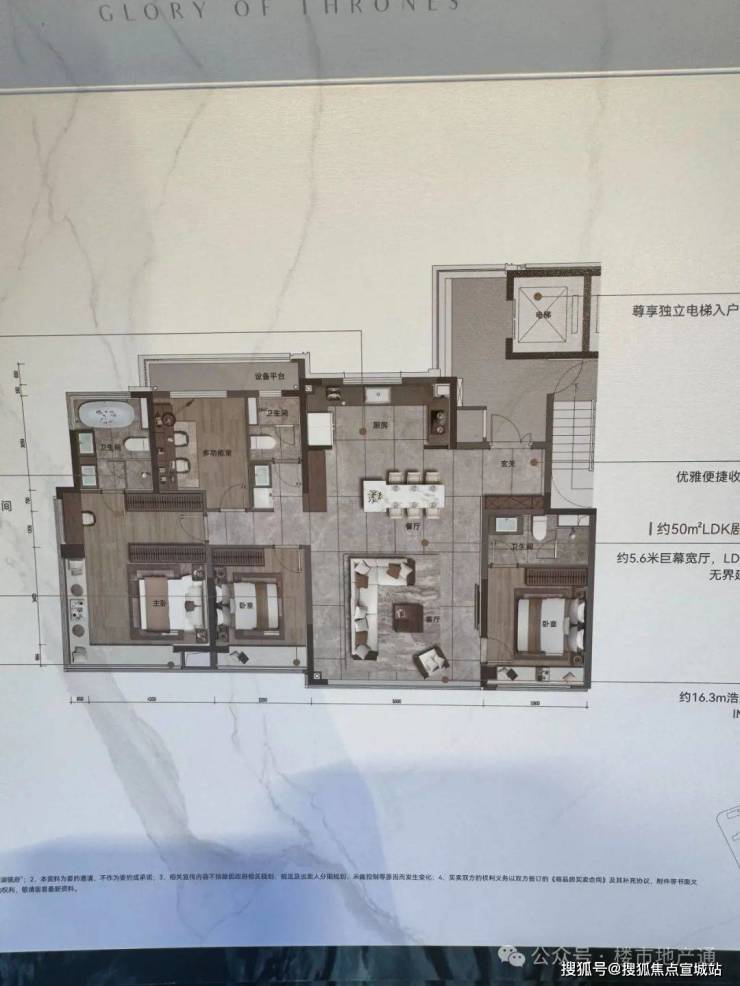 岩板客厅背景墙、全屋壁布、马可波罗60cm*1.2m瓷砖,增配玄关柜、欧普电动晾衣架、全屋智能系统、主卧圆弧吊顶、上海三菱电梯