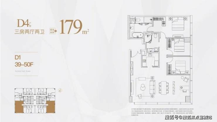 高区为39-50层,户型分别是125㎡,150㎡,180㎡。
