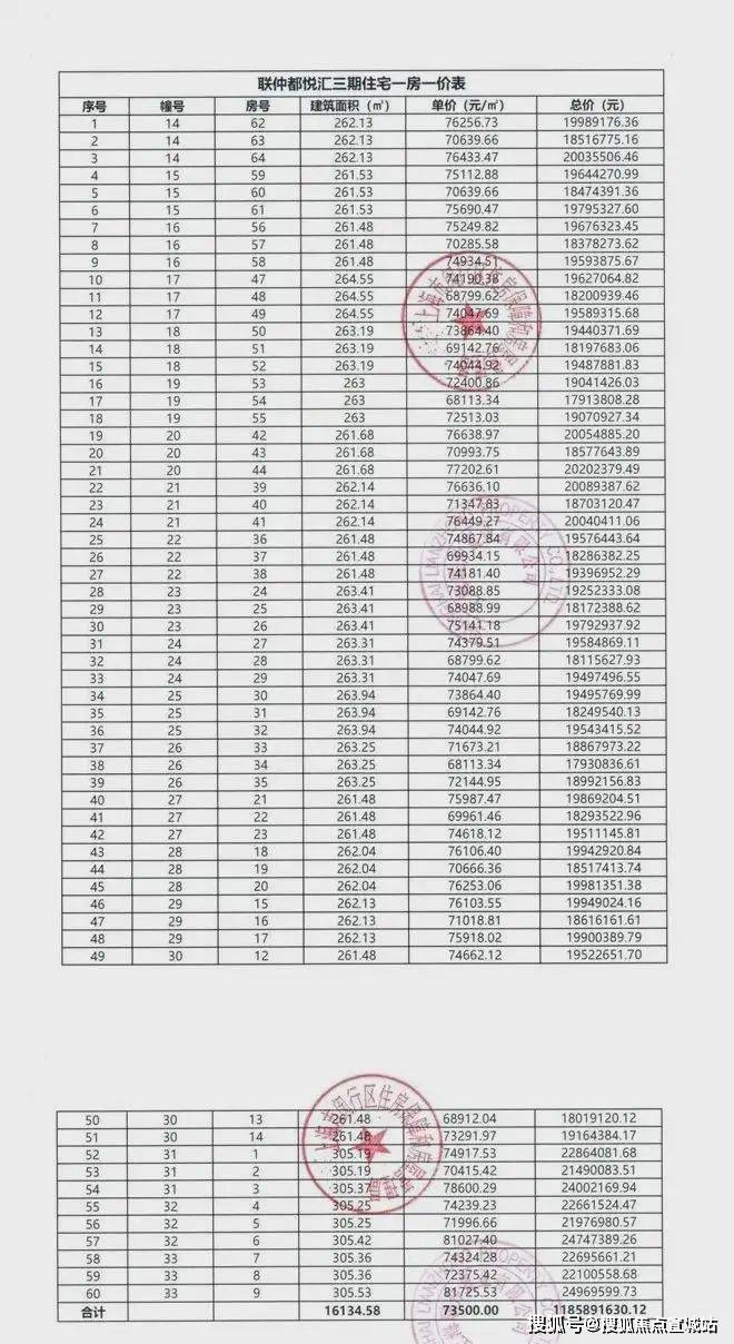 一房一价表: