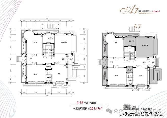 布局:地上三层(4.5米层高)+地下一层(6.2米层高)+900㎡花园