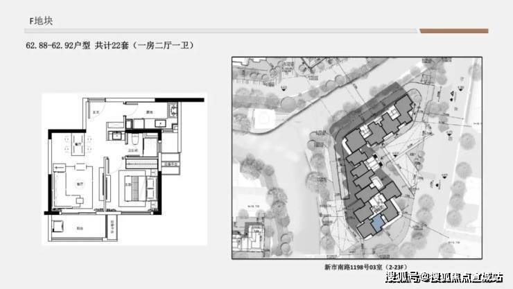 F地块1单元&3单元得房率约73.6-74.6%;