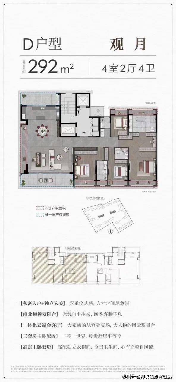 292㎡:五室及以上大平层,主卧 60㎡套房加双衣帽间,总价 853-995 万。