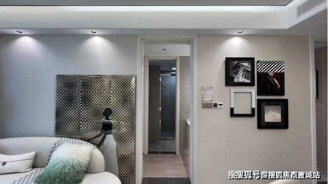 客厅和主卧都标配悬浮吊顶、无主灯设计,佳运瑞璟湾售楼处电话:400-8618-004(一对一热情服务)背景墙采用皮革和铝合金拼接,也都是实体交付的。
