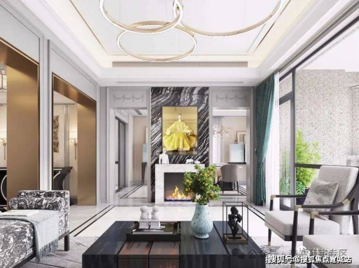 小区建筑设计以简欧风格为主,外墙干挂大理石,整体是浅米黄色调。四周采用铝合金断桥双层中空玻璃采光窗装饰和庄重石柱,为别墅的豪气程度增添色彩。样板房室内装修为轻奢和简欧混搭风格,自带高级感的设计元素彰显了住户的气质。