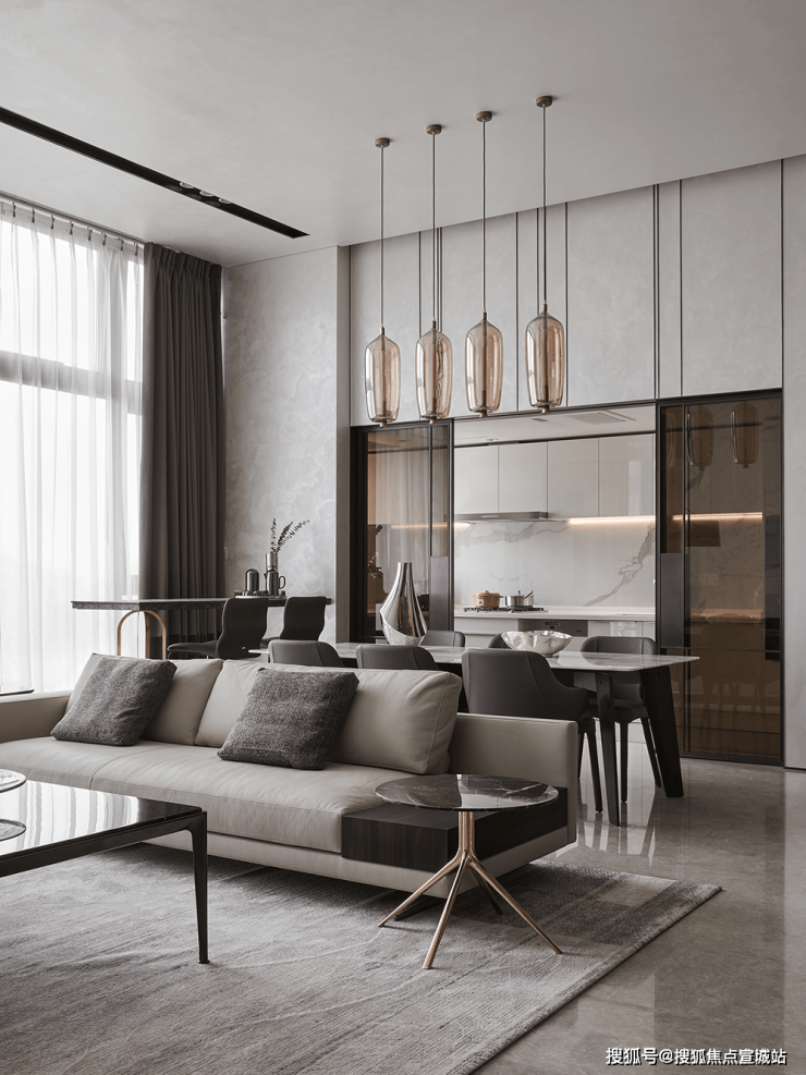 整体简约的现代主义风格令人安怡,沉稳温丽的色调下,线条利落有致,格局清晰,结构性强,空间质感不言而喻.