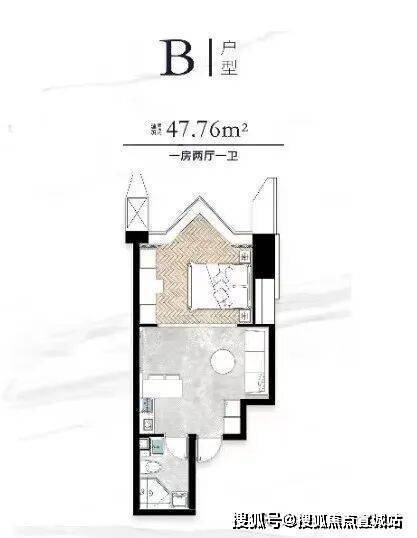 面积47.99㎡1房1厅188万阳光充沛边套全明通透