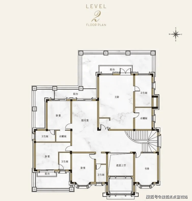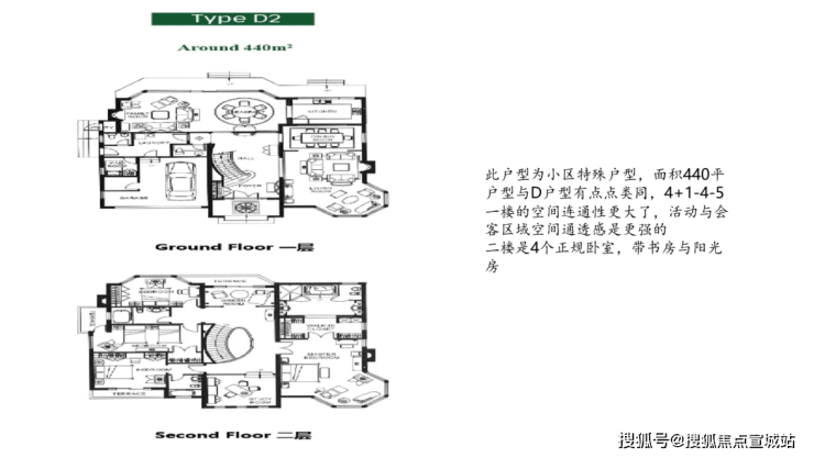纯地上两层,建面约850㎡(7房4厅6卫)