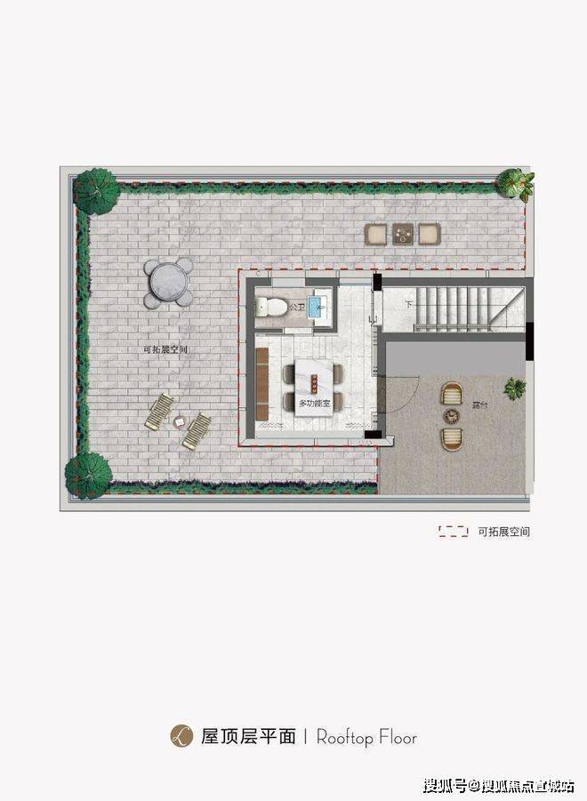 二层空间同样打造了约7.2米长阳台,二层设置了一个豪华套房主卧,以及一个次卧、一个书房以及公卫连通开间约4.2米的主卧与开放式书房,即使起居在二层,南向外接宽境阳台,可以眺望小区的园林美景。上叠:以195㎡的五房四卫,除了二层规划了朝北露台外,三层的空中阁楼,从多功能空间推门而出,竟然是一个“270°环幕式”生活露台,面积有70㎡左右。它可以是你抽离纷杂尘世的秘密花园,也可以是朋友聚会的快乐之地。