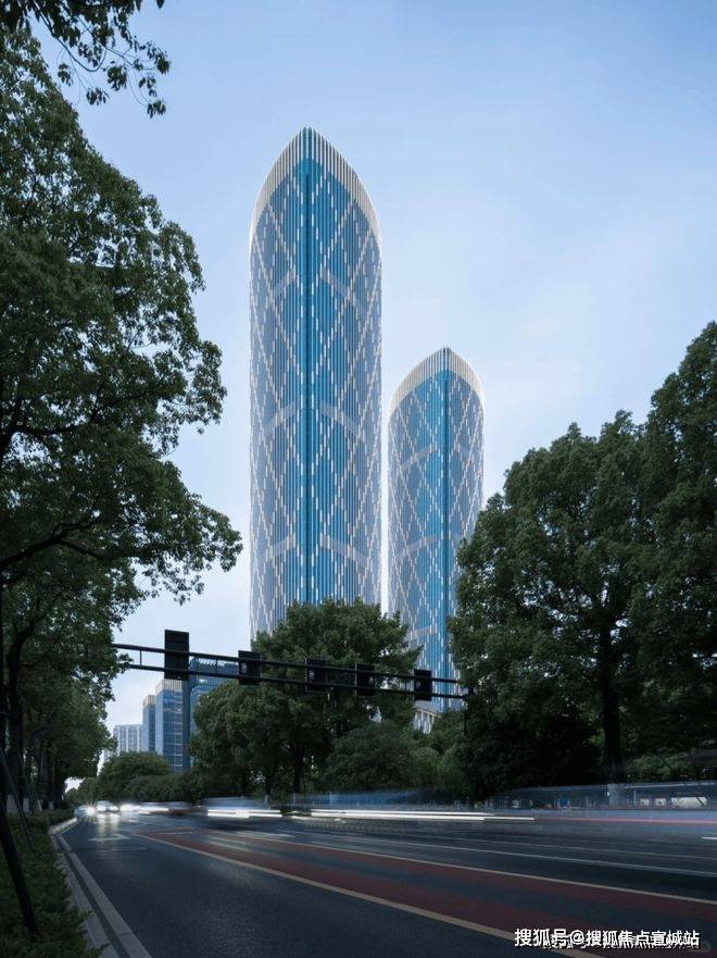 文化符号:建筑以兰博基尼Veneno超跑为灵感,双塔造型被誉为“小杭州之门”,外立面采用流线型光影设计。