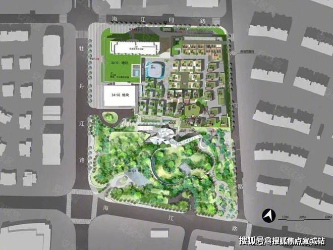 展现出首层聚落-公园绿岭-立体街区