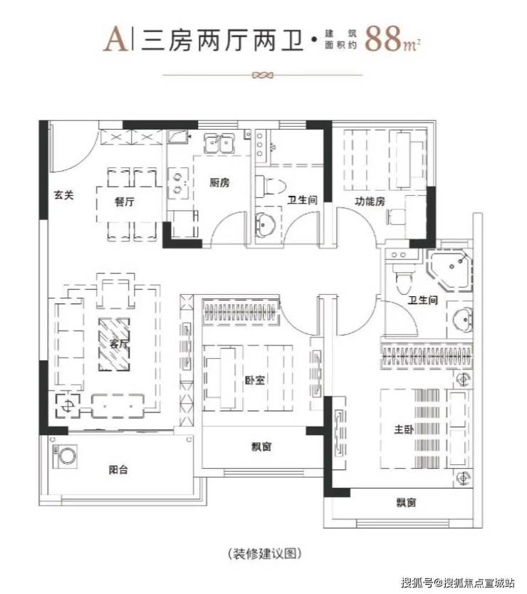 纯毛坯交付,无隐形溢价:无地砖、无墙漆、无吊顶、无厨卫设备,开发商不设“统一精装”,业主可按家庭需求自由设计,得房率高达80%–83%,88㎡户型实际使用面积媲美普通小区95㎡高层。