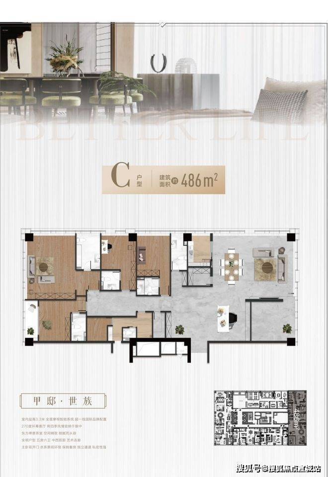 鑫湾甲邸定位为“整栋规划高阶顶奢大平层”,主打241 - 486㎡奢装大平层。