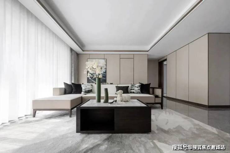 放眼整个客厅空间,并没有繁杂的元素点缀,甚至就连客厅格局也以开阔为主,恰恰迎合了中式水墨画的恬淡素雅之美.