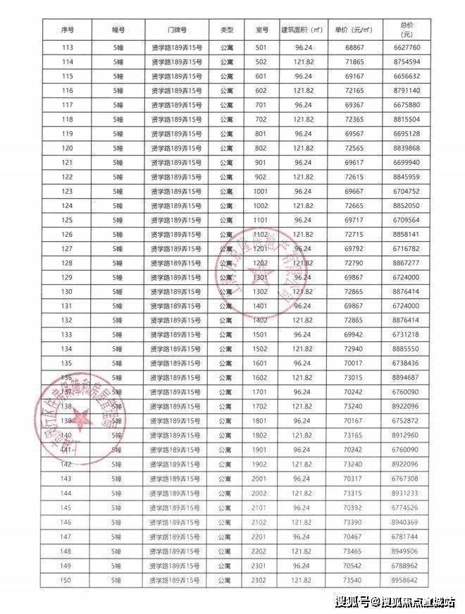 一房一价表