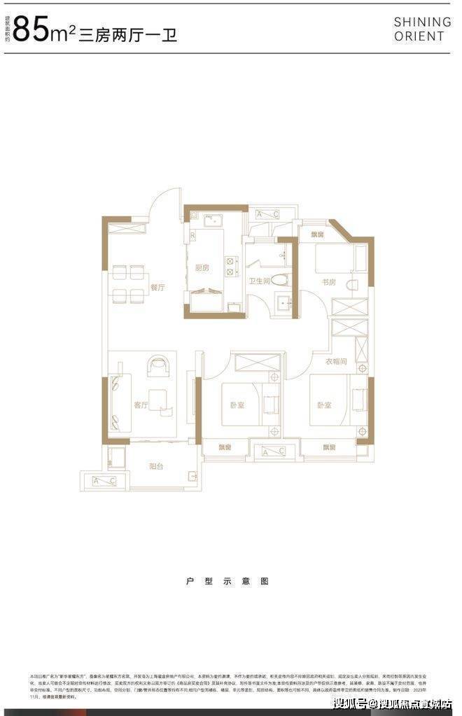 建面约85㎡三房两厅一卫