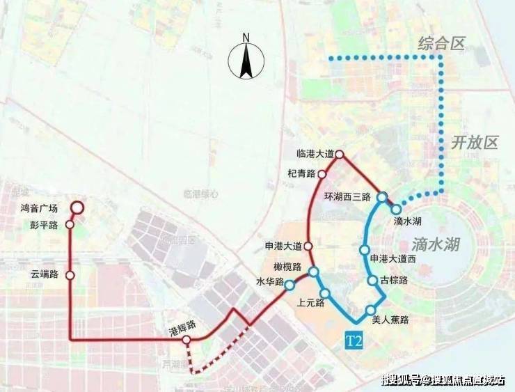 同时,区域内连接主城区各个板块的临港中运量也在进行规划和建设,其中T2线远期还将从滴水湖站向北延伸,交通将更加通达.