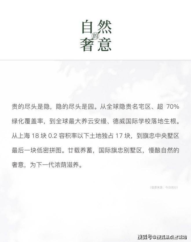 最新消息:闵行旗忠国际别墅区全新别墅项目【尚园】正式发布!项目以约1.05容积率规划8.5万方滨水低密社区,涵盖建面约159-179㎡叠加、建面约227-247㎡联排、建面约253-266㎡合院等产品形态,闵行尚园别墅城市展厅现已开放!