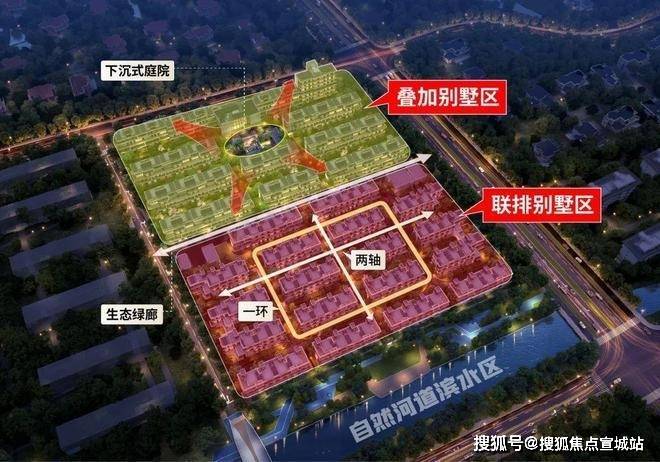 更纯粹的低密墅质社区尚园以东西向的生态绿廊为界将园区自然分成2个墅区,北侧为4层叠加别墅区,南侧为3层联排别墅区