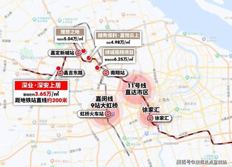 地铁11号线昌吉东路站直线仅约200米,2站可达嘉定新城,9站虹桥火车站,且同区域仅约1公里的深业安亭项目联动价已达4.2万/㎡。
