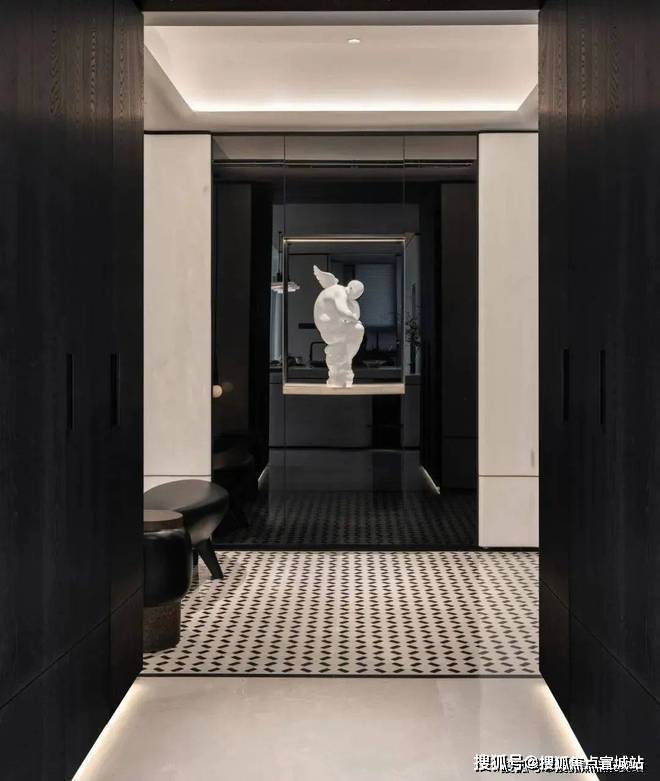 室内设计融合了香奈儿风格的温柔都市时尚感。整体色调以黑白灰为主,既有现代风尚的冷静与理性,又有都市生活的时尚与雅致。