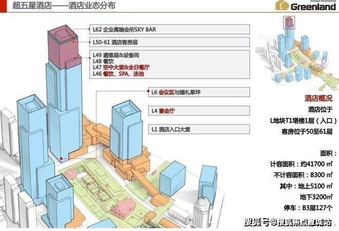 复合业态:约46万方超高层企业总部办公楼,约17万方大型商业中心,约4.2万方丽思卡尔顿酒店,约12万方高端住宅,