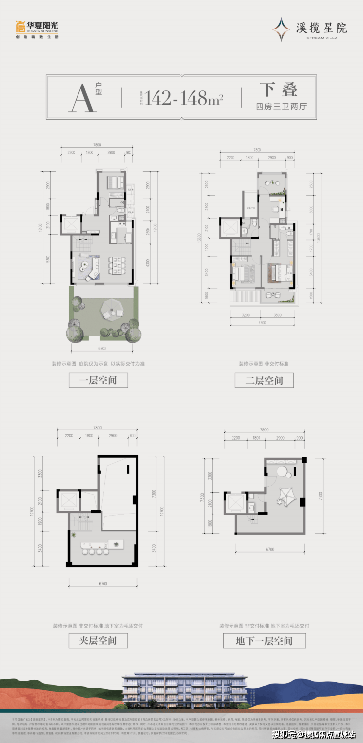 建面约142~148㎡下叠:地下室多元空间营造/餐客连厅/奢适双卧/南向阔景阳台