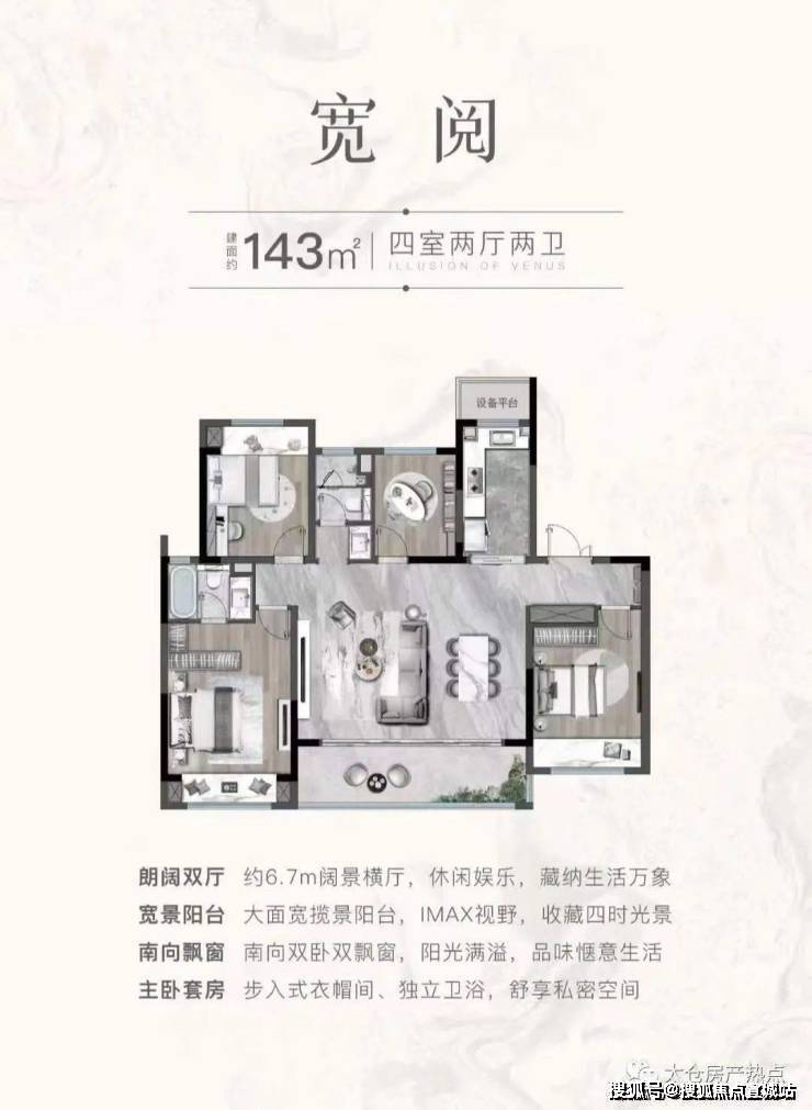【宽境奢居】全横厅设计,打造IMAX奢阔巨幕,景观视野;品质奢居,从设计规划到细节勾勒均充分考量,营造精而美的生活感受。