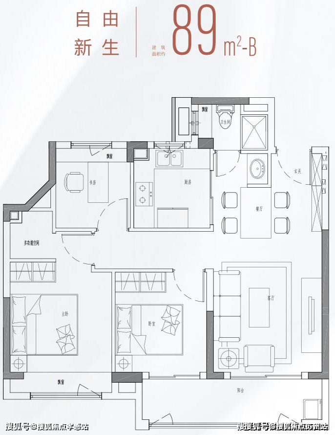 建面约89㎡户型图