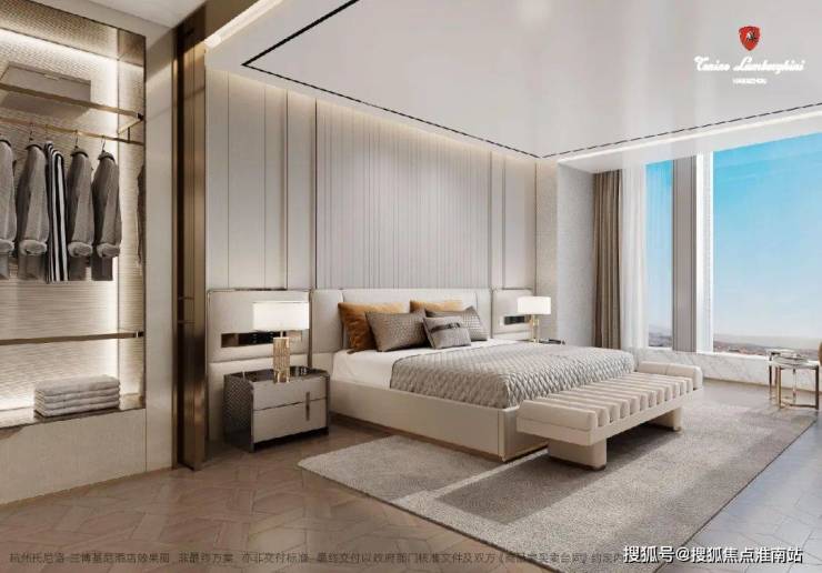 杭州托尼洛·兰博基尼行政公寓:产品设计首开建面约230-420㎡建面约230㎡参考总价800万起,3房3卫双主卧设计,约40㎡主卧奢配独立衣帽间.建面约420㎡,总价1300万起,4套房+1书房+1保姆房,客厅超13米弧形巨幕,精装交付(装修标准约1.8万/㎡)