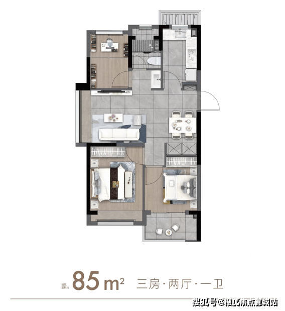 「建面约85㎡3房2厅1卫」