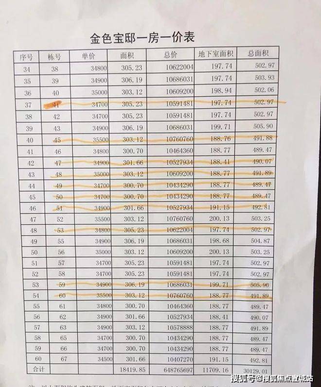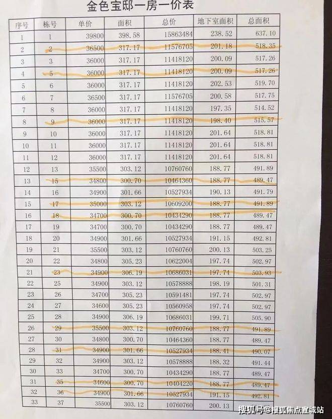 附一房一价表: