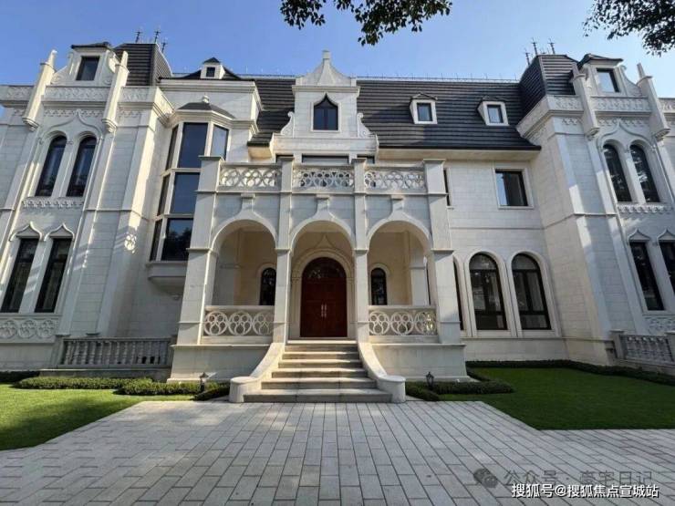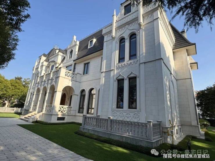 浅米白石材立面,搭配深灰坡屋顶,经典的老虎窗与雕花栏杆,复刻着法国贵族的仪式感。