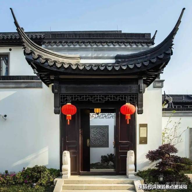 门前一对抱鼓石,推开铜环双开门就是家。滴水檐瓦,全依古法,还原每一个繁复的构件。