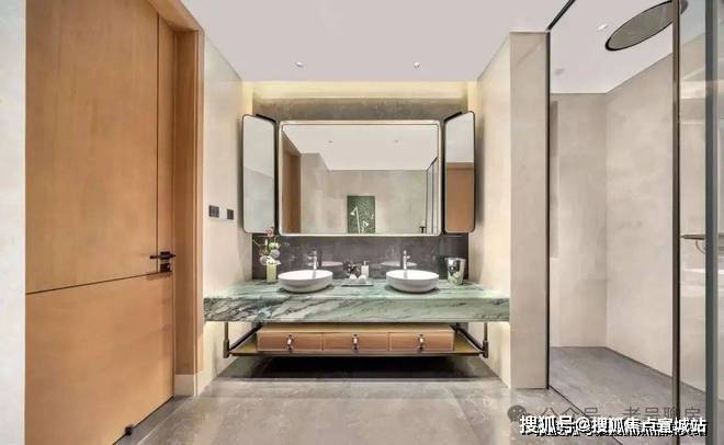 一层主要作为会客功能。样板间将一楼书房空间打开,与餐厨空间相连,更显空间感。还贴心设计了一个父母房,方便老人起居
