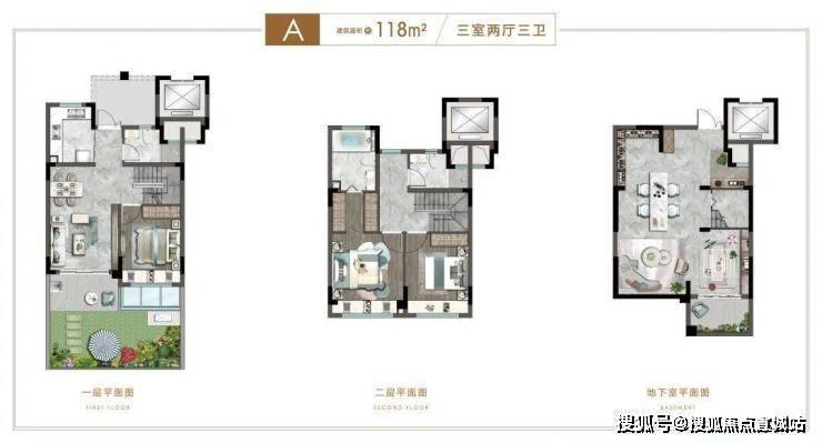 约123平上叠3房户型,共上下两层,全明设计,格局开阔,宽景阳台,上承天空,下承生活。