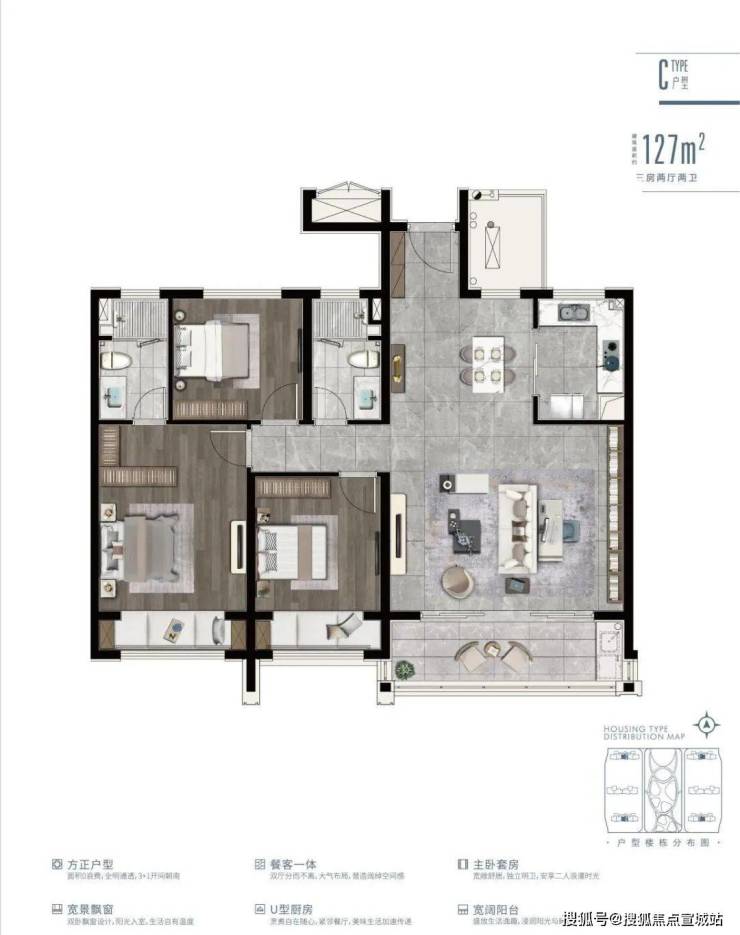 首开产品:建面约105m²,建面约122m²,建面约127m²