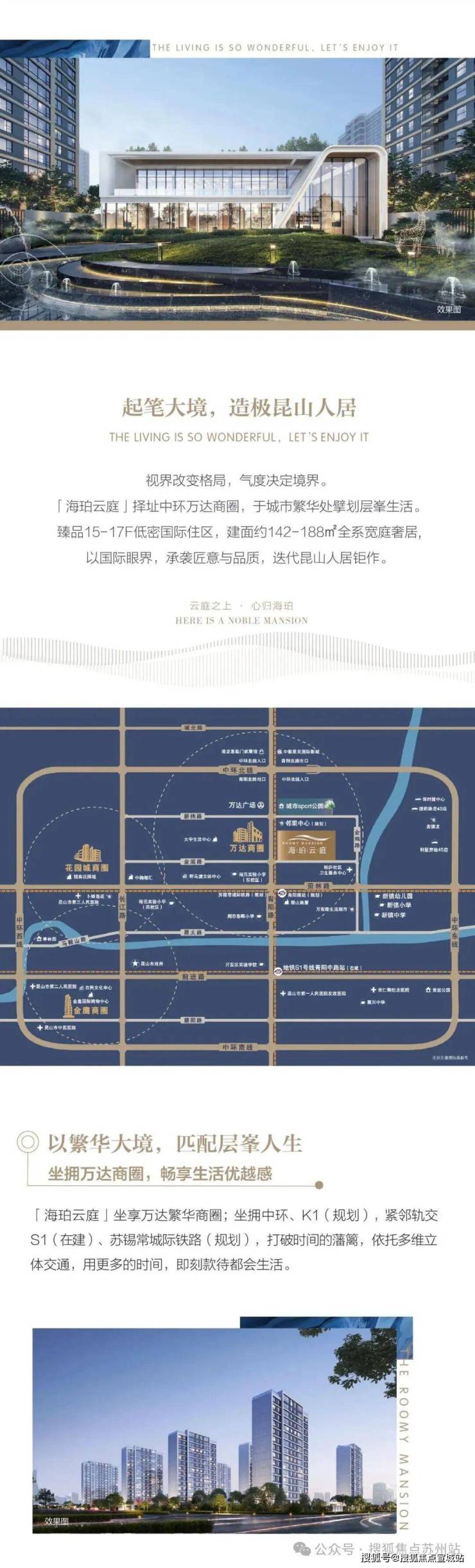 配套设施:项目位于青阳万达商圈核心,与万达广场仅一路之隔,周边还有招商花园城等商业体。距在建的苏州轨交 11 号线金浦大桥东站约 1 公里,周边有 104、52 等多条公交线路。2 公里内有新镇幼儿园、新镇小学等教育资源,以及友谊医院等医疗资源。此外,项目附近还有 5 万㎡的城市运动公园和娄江绿廊等休闲场所。