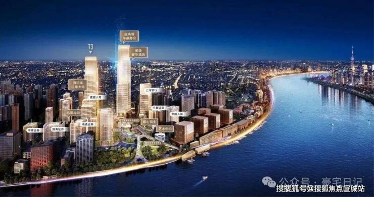 绿地外滩中心项目占地面积约12.67万㎡,总建筑面积约119.9万㎡,地上建筑面积中,计容建筑面积约70.19万㎡,其中商办57.5558万㎡,住宅12.6342万㎡。项目包括4栋甲级写字楼(T1,T3分别为300米+240米)、7栋总部办公楼、购物中心、超高层星级奢华酒店、8栋住宅楼等。其中300米的超高层规划蓝图,在天际建筑汇聚的外滩,再一次刷新了城市天际线,T1-300米超高层上部,46-62层为五星级酒店(丽思卡尔顿)38-40-45层为行政公馆!中部7-37层为甲级办公,底部为商业及大堂。