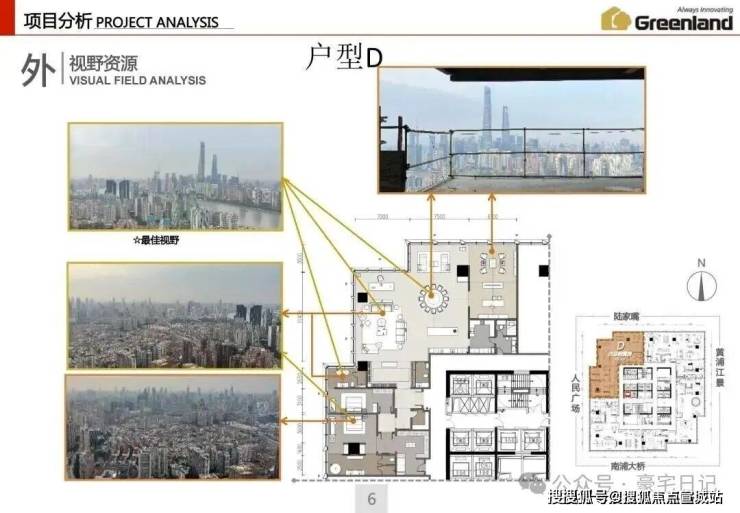 本案北视角:陆家嘴、北外滩;西视角:人民广场、新天地;东视角:浦东、黄浦江;南视角:南浦大桥、世博园。
