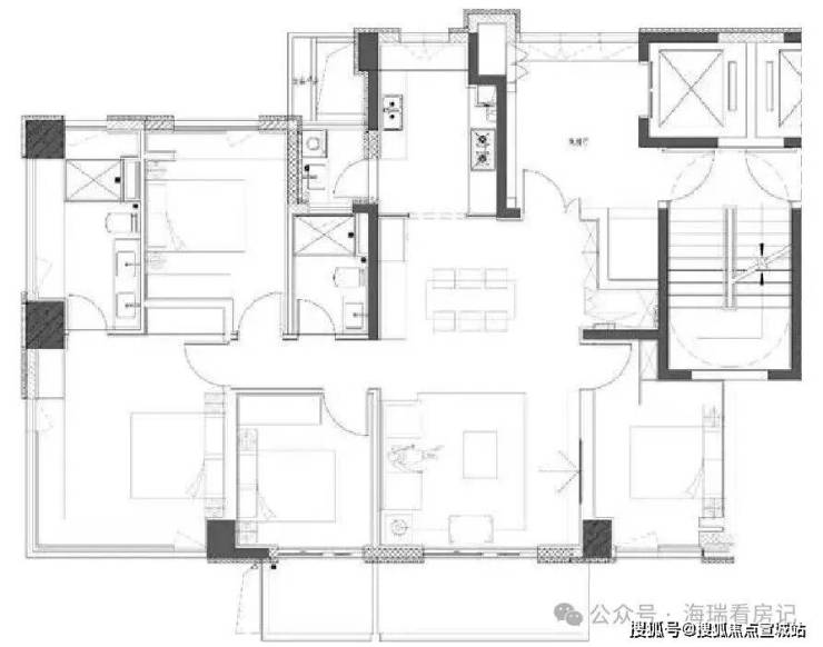 建面约125㎡4房设计,并且是多阳台、一梯一户的设计,私密性、实用性、附赠空间拉满。