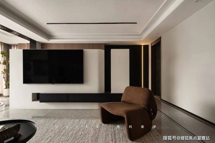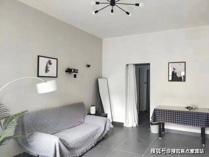 重新设计后打破原本结构,把鞋柜和次卧门与沙发背景连成一体,更简洁大气