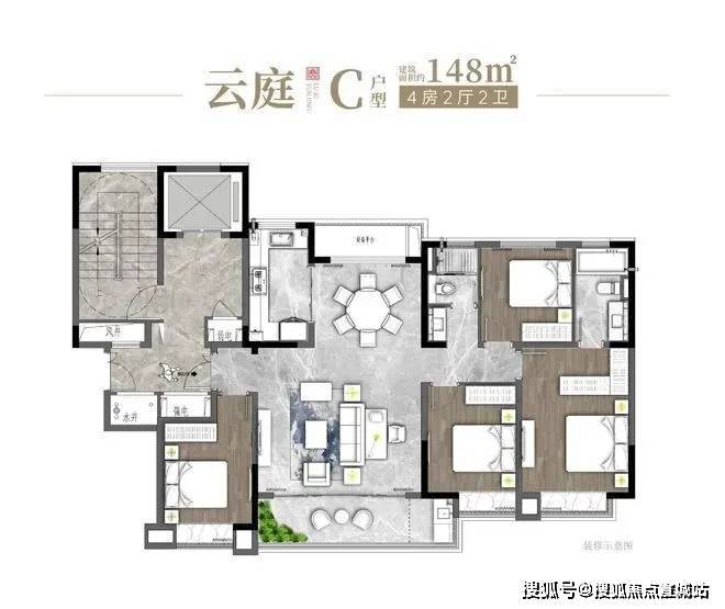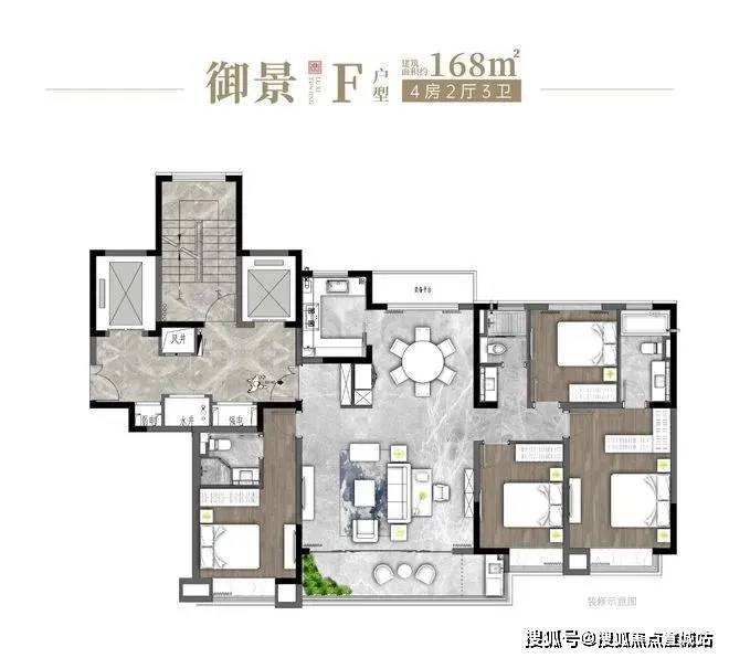 部分户型具有标准层高设计,户型方正,空间使用性高,有独立玄关提升隐私性。4 室的设计适合改善型人群,2 卫的配置可避免抢卫生间的尴尬,保证主人生活的私密性。餐厅和客厅无缝连接,营造出局部大空间的体验。房间动区简约大气,提供舒适的生活娱乐氛围。部分主卧采用套房设计,扩大了卧室面积,配有独立的主卧卫生间,提升了主人的居住体验。部分户型的主阳台朝南,若装配落地窗,采光较好,且户型朝南的房间较多,可充分享受 “冬暖夏凉” 的舒适体验,同时南北通透,厨卫全明,室内采光无死角。