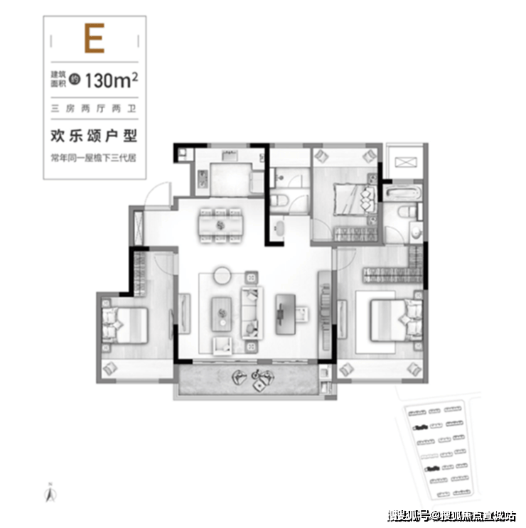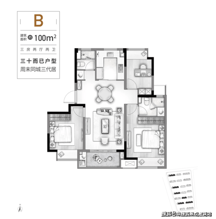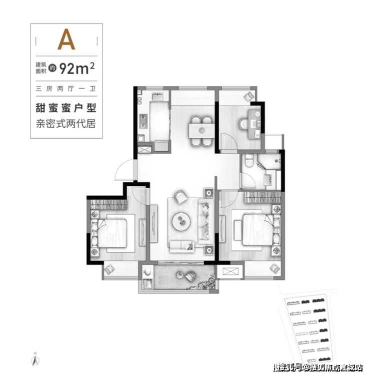 此户型为板块内少有的100㎡以下小户型,非常具有总价优势。