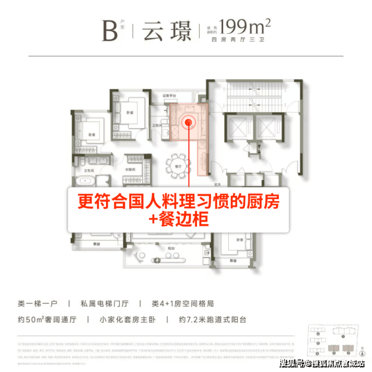 即将加推的建面约199方B户型,是世纪城首屈一指的神户型,装修更是碾压级:
