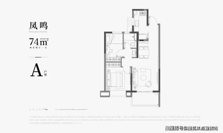 A户型|建面约74㎡2房户型图▼
