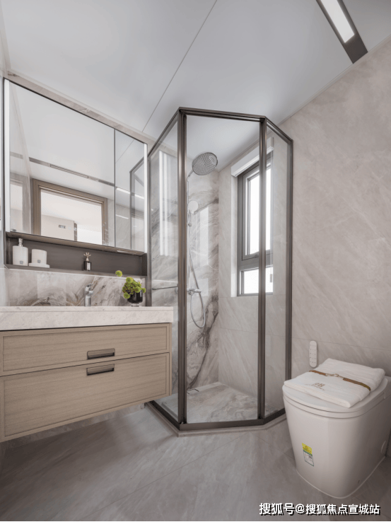 主卫配置魔镜,双面高清镜面,内含美妆冰箱的镜柜及卫浴柜,恒温冷藏。