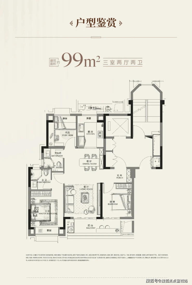 建面约99㎡经典飞机户型设计,南北通透,作息空间互不干扰;集约化过道+多飘窗设计,视觉向外延展性更大,整体户型开阔感更强;独立玄关+双卫配置,保证了业主足够的私密性和舒适度;南向次卧与阳台相连,使得室内尺度、采光及通透性都十分出彩。