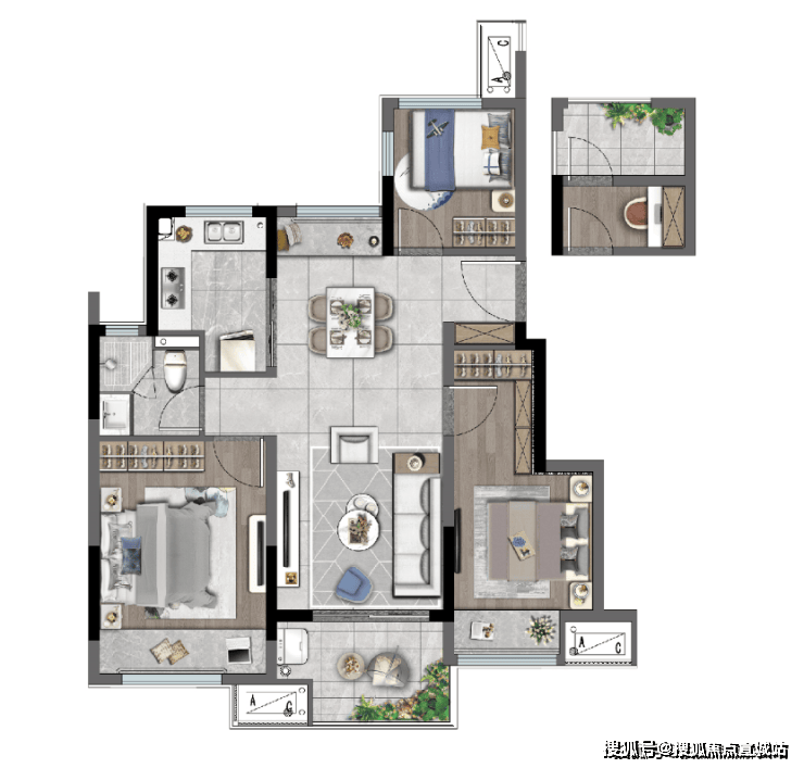 其次,该户型还做到了真正的动静分区。卧室的私密性完全不受公区影响,将舒适度与空间感拿捏得当。
