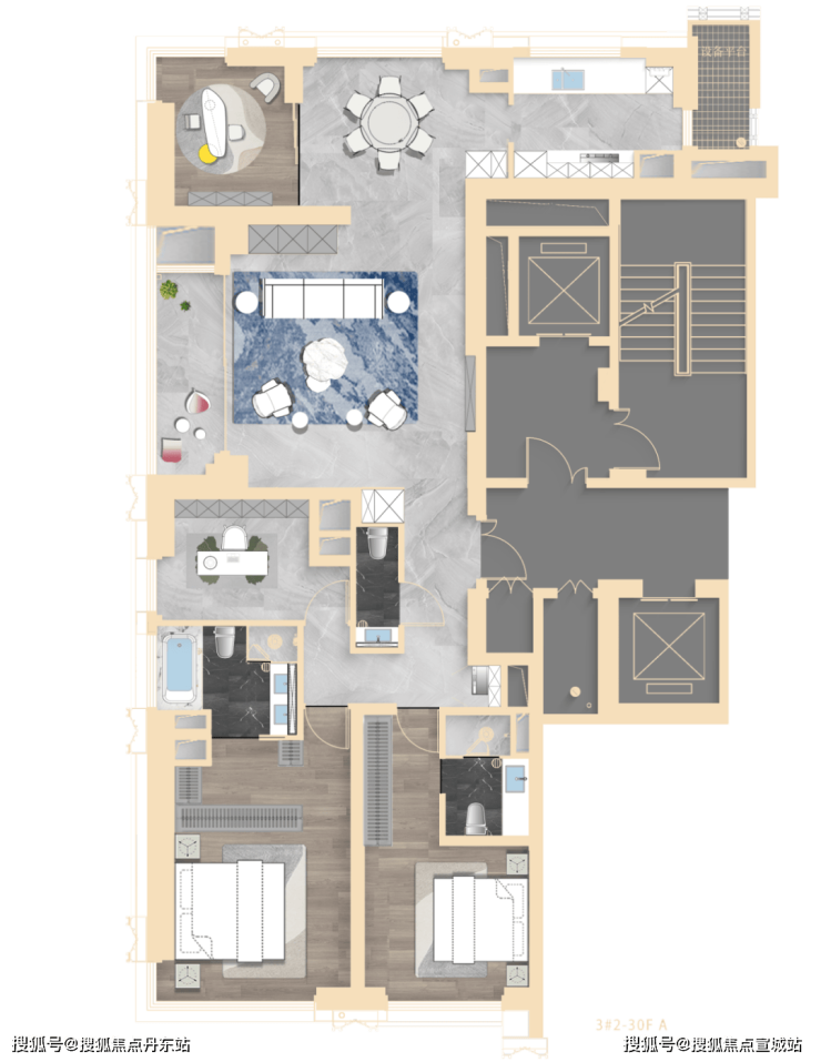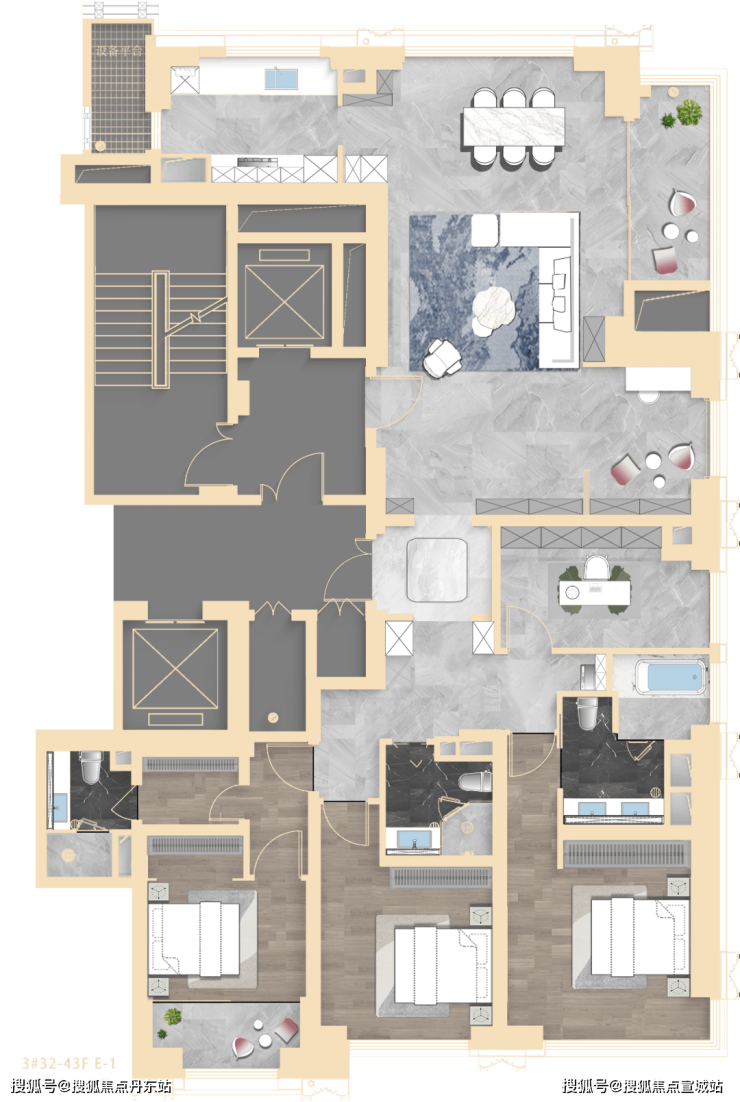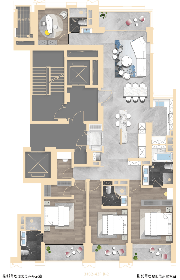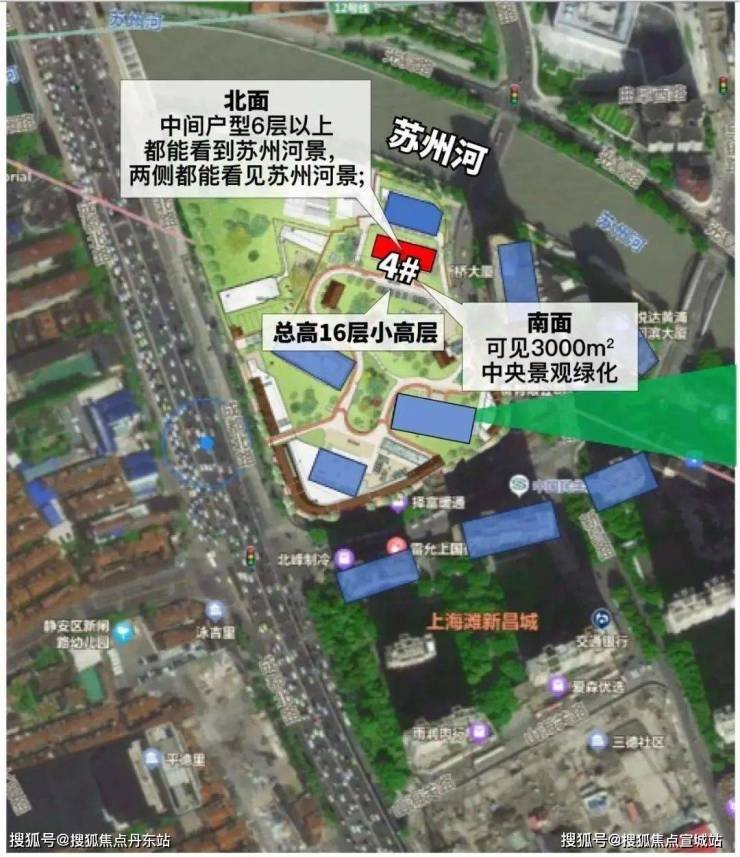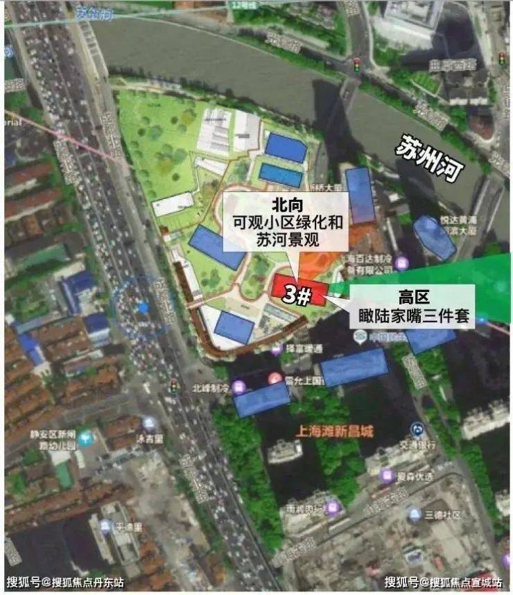 3#为超高层:高区瞰陆家嘴三件套;北向可观小区绿化和苏河景观。4#为小区楼王: